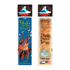 The lionfish is a showstopper resident in Sabah's marine parks and it's instantly recognizable by its majestic venomous fin spines that resemble a lion's mane hence its namesake. Despite its imposing name, this fish tends to be shy towards approaching humans and may keep its distance, making it challenging to get great photos of it. If you didn't get any shots of it during your dive if you went, our photographer has done the hard work for you with a close-up featured in this bookmark.