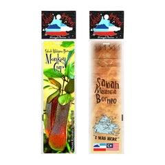 Nepenthes is a genus of carnivorous plants with many natural as well as cultivated hybrids found in Borneo. They're more commonly known as tropical pitcher plants or monkey cups, the latter name derived from the assumption of monkeys drinking rainwater from the pitchers. Numerous species that thrive in Sabah's rich rainforests are rare and endemic to the state. They're also considered protected here, therefore making it illegal to own or trade them. Why not keep a photo of them instead by getting this bookmark? The species featured here is found along the Mt. Kinabalu summit trail.