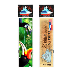 Hornbills are some of the most exotic looking birds in the world and there are 8 species found in Sabah. This bookmark features the oriental pied hornbill, one of the most common species found throughout South East Asia, and the well known rhinoceros hornbill, the national bird of Malaysia.