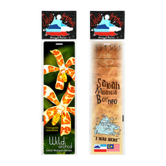 The Uexkuell's Trichoglottis orchid (botanical name: Trichoglottis uexkuelliana) is a large native species found deep in the rainforests and near the rivers of Sabah as well as around Borneo Island. This bookmark features a close-up of this orchid where you can see its unique pattern of red splotches on its pale petals in detail.